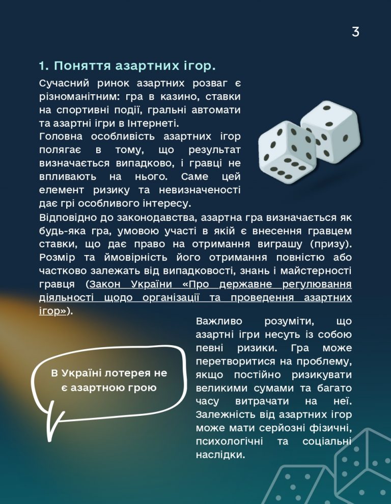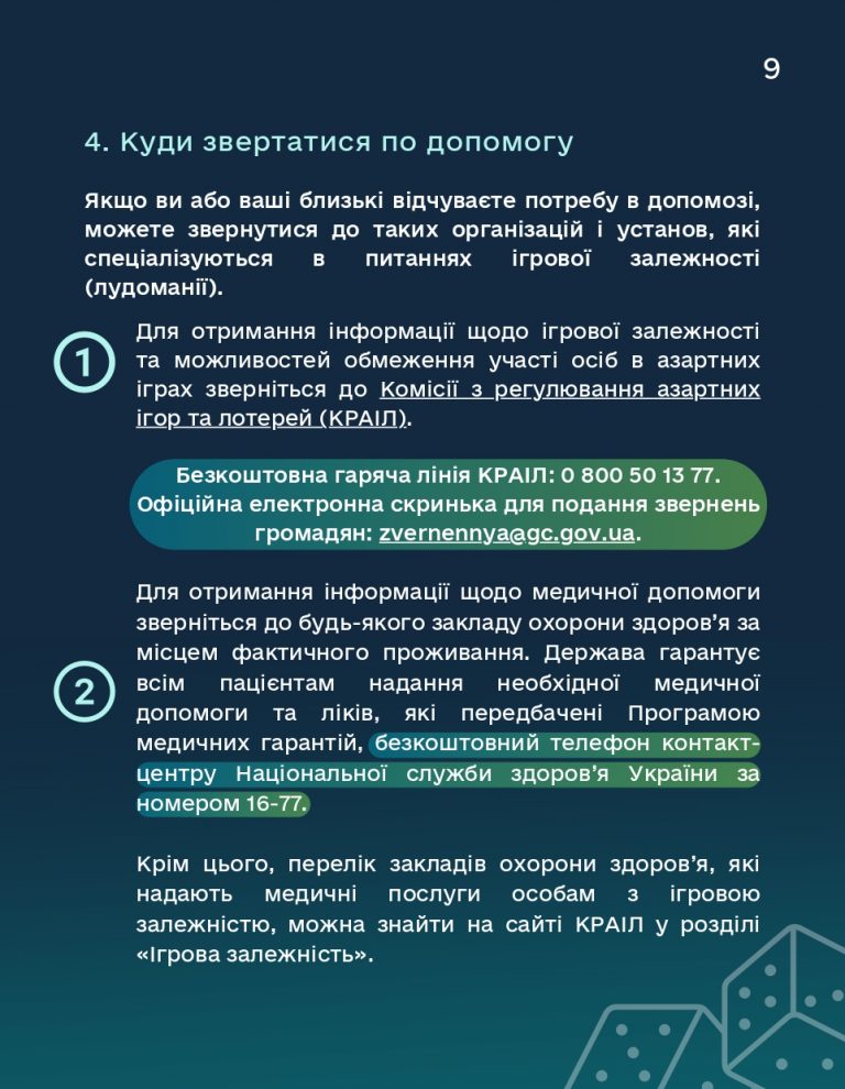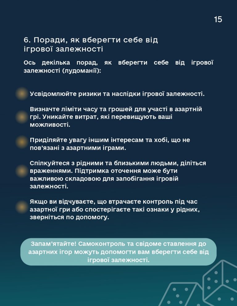 Для запобігання ігровій залежності та формування культури відповідального ставлення до азартних ігор Комісією з регулювання азартних ігор та лотерей розроблено E-брошуру на тему: «Азартні ігри – це лише розвага».