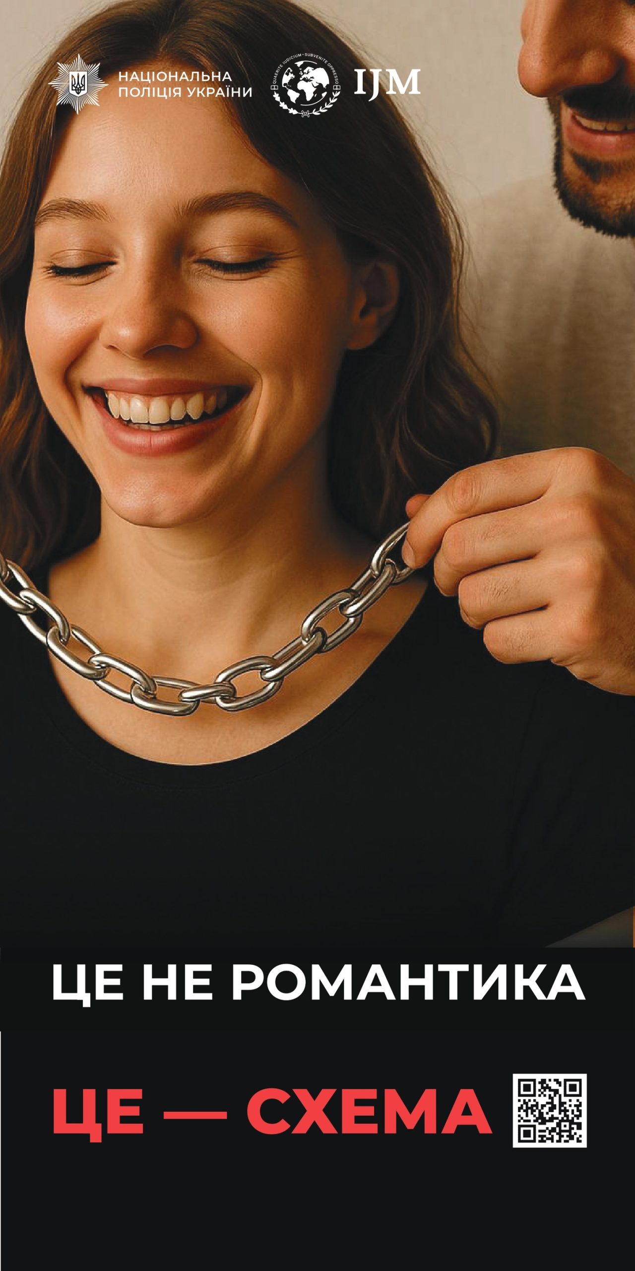 У межах Меморандуму про співпрацю, укладеного між Національною поліцією України та фондом «International Justice Mission», Департаментом міграційної поліції, Департаментом комунікації Національної поліції України спільно з IJM підготовлено просвітницькі матеріали, спрямовані на підвищення обізнаності населення щодо проблематики торгівлі людьми та експлуатації дітей.